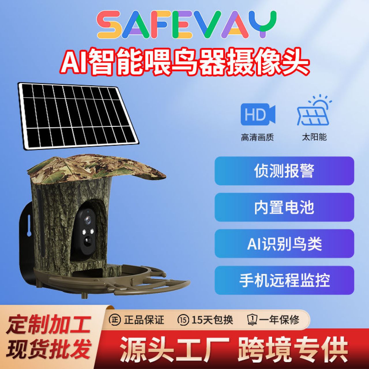 智能AI鸟类识别拍摄户外防水太阳能wifi超清摄像头